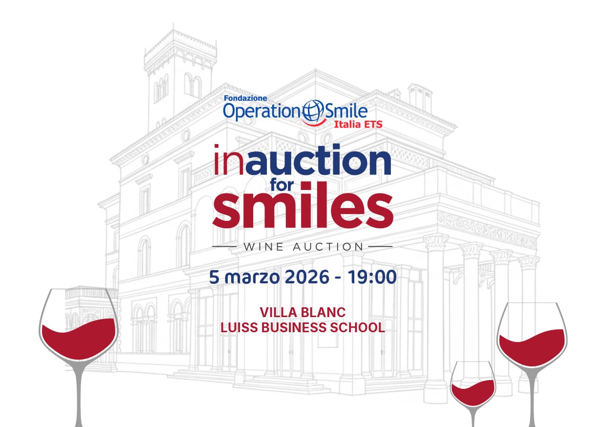 Giovedì 5 marzo alle ore 19:00 torna “In Auction for Smiles”, l’asta di vini pregiati promossa dalla Fondazione Operation Smile Italia ETS che quest’anno vede al fianco dell’iniziativa anche la Luiss Business School, partner dell’evento. Scopo della serata una raccolta fondi supportata da ben 70 aziende vitivinicole. L’appuntamento, ospitato presso la splendida Villa Blanc, è mirato al sostegno dei programmi medici internazionali di Operation Smile per offrire assistenza medica e chirurgica a chi nasce con malformazioni del volto come le labiopalatoschisi nei Paesi a basso e medio reddito, dove l’accesso alle cure essenziali è ancora limitato.